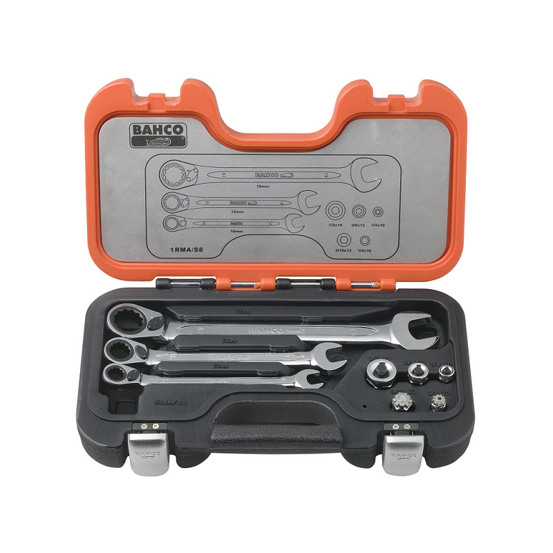 1RMA/S8: Knarren-Ring-Maulschlüssel-Satz mit Adapter