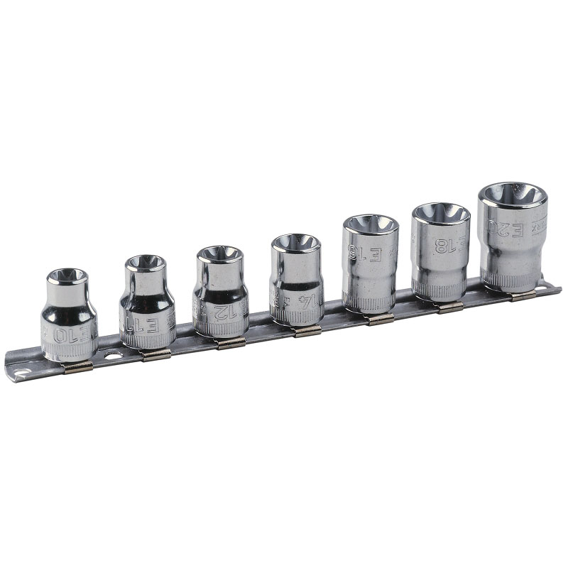 Startseite   Steckschlüsseleinsätze und Zubehör   Steckschlüssel-Einsätze 3/8"   Satz Steckschlüssel-Einsätze 3/8" TORX® auf Klemmleiste