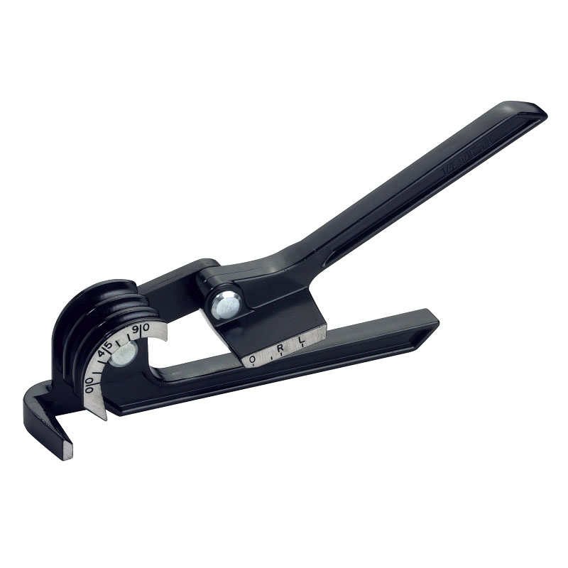 Universelle Rohrbiegezange. Für Biegungen links, rechts und gekrümmt bis zu einem Winkel von 90°. Einsetzbar bei Rohren aus Aluminium, Kupfer und rostfreiem Stahl in 1/4", 5/16" und 3/8" (6, 8 und 10 mm).