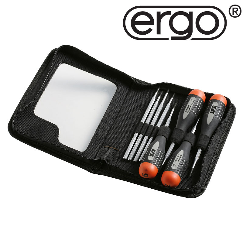 - Bestehend aus 4 Ergo Drehmomentschraubendrehern und Ersatzschäften.