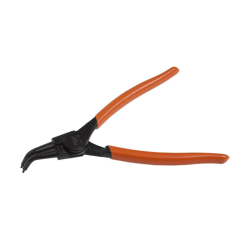 Zange für Aussen-Sicherungsringe, mit 90° gewinkelte Backen, geschmiedeten Spitzen und Öffungsfeder