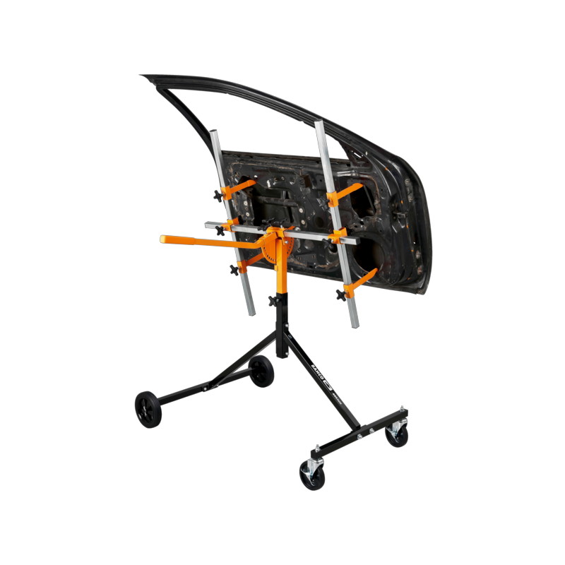 - Die Position der Arme und Haken kann eingestellt werden, für eine optimale Positionierung des Karosserieteils. Sobald das Karosserieteil auf dem Gestell gehalten