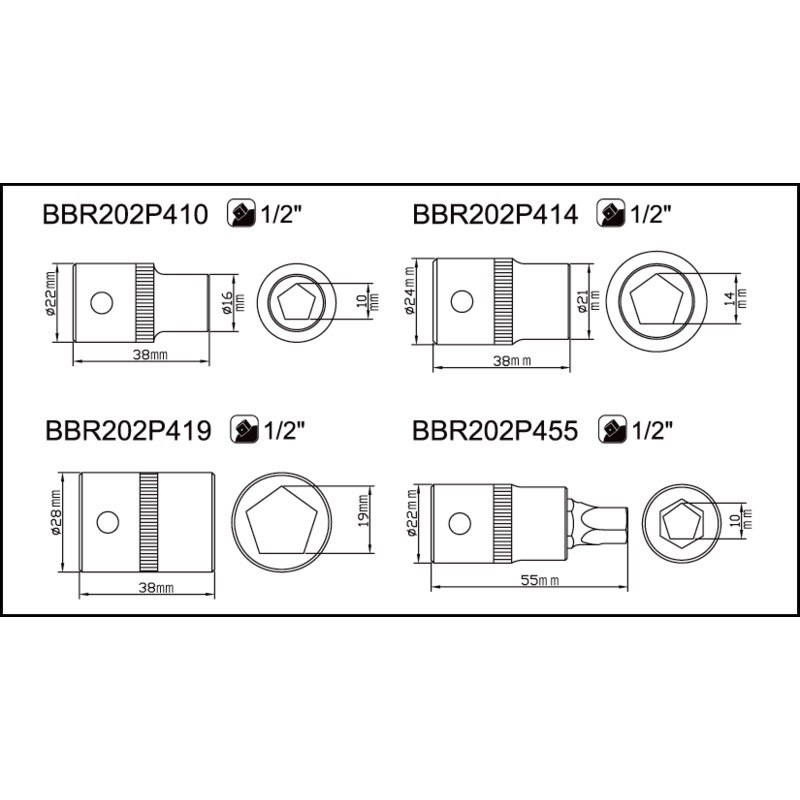 1/2" 5-kant Steckschlüssel- und Bit-Satz für Handbremsen.