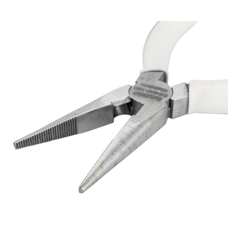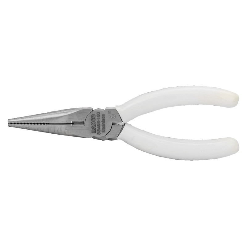 Edelstahl-Flachrundzangen mit PVC-beschichteten Griffen.