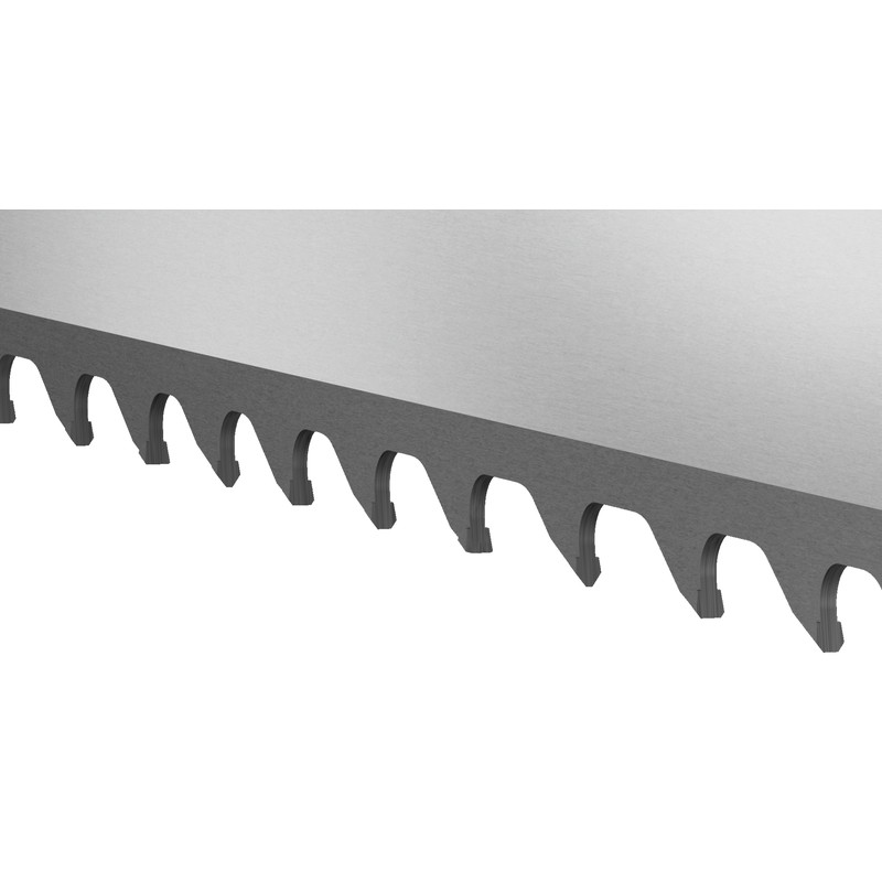 • Ungeschränktes Multi Chip Sägeband mit hartmetallbestückten Zahnspitzen zum Sägen von Titanelementen und -blöcken, sowie rostfreiem Stahl und Aluminium