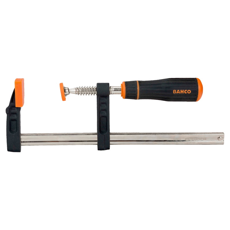 Schraubzwinge mit 2-Komponentengriff.