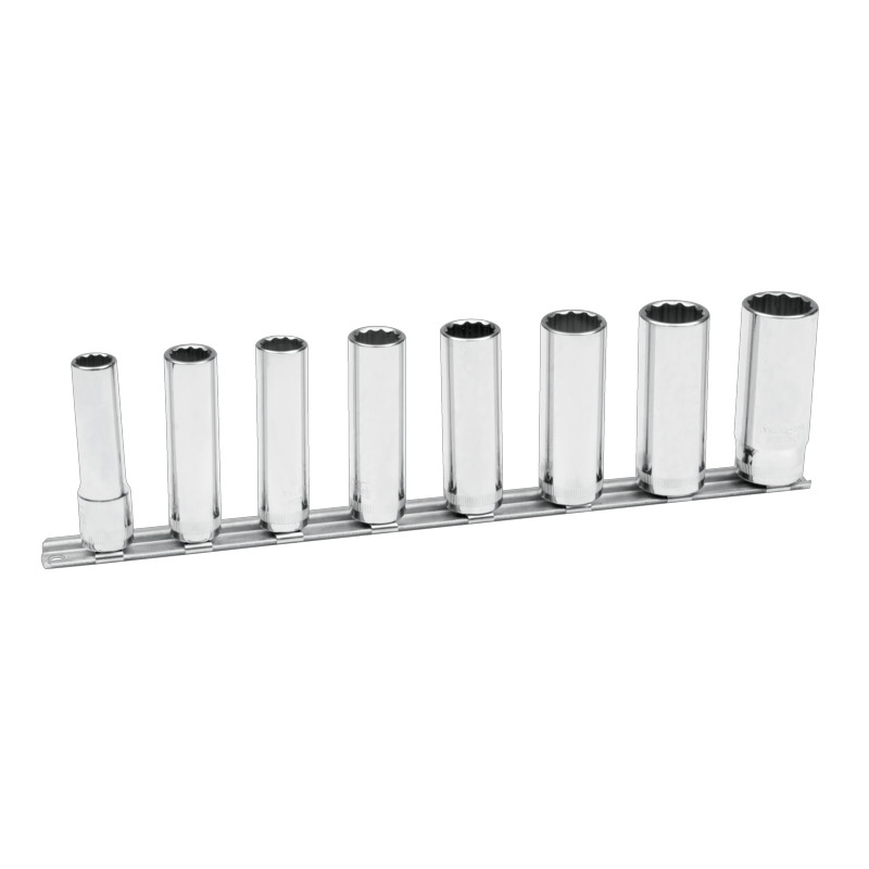 3/8" Steckschlüssel-Satz, 8-teilig, auf Klemmleiste