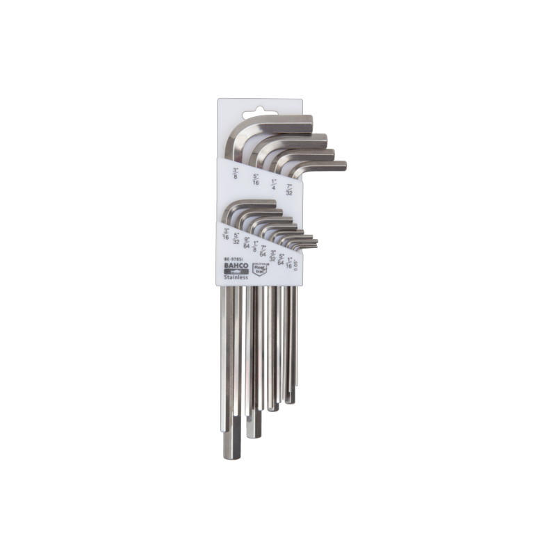 Edelstahl Winkelschraubendreher-Satz, lange Ausführung, Zoll, 13-teilig, BE-9785i